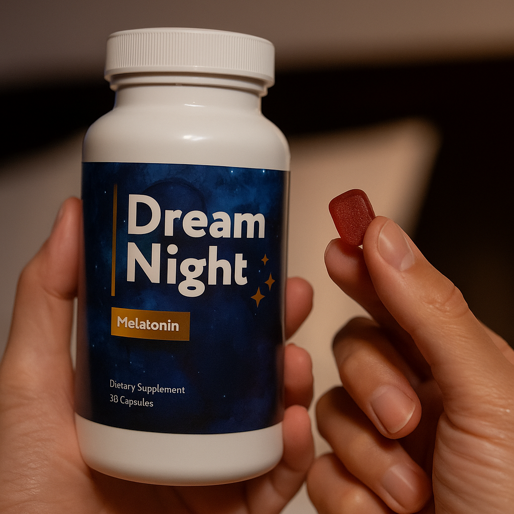 Dream Night works by using natural melatonin to help regulate your sleep-wake cycle, promoting faster sleep onset and deeper, more restorative rest throughout the night.